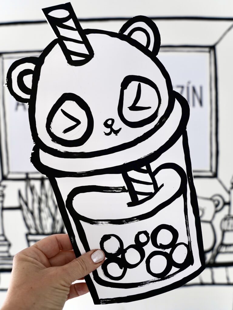 🐼Találtok a dobozban egy Anita által rajzolt pandás bubble tea mintát, habkartonra felfestve – ehhez hat darab, levegőre száradó gyurmát, és egy gyurmaformázó eszközt is tettünk a dobozba. Ezek, és persze a VIP videó segítségével fogja tudni gyermeked megalkotni a vagány, színes panda-képet.