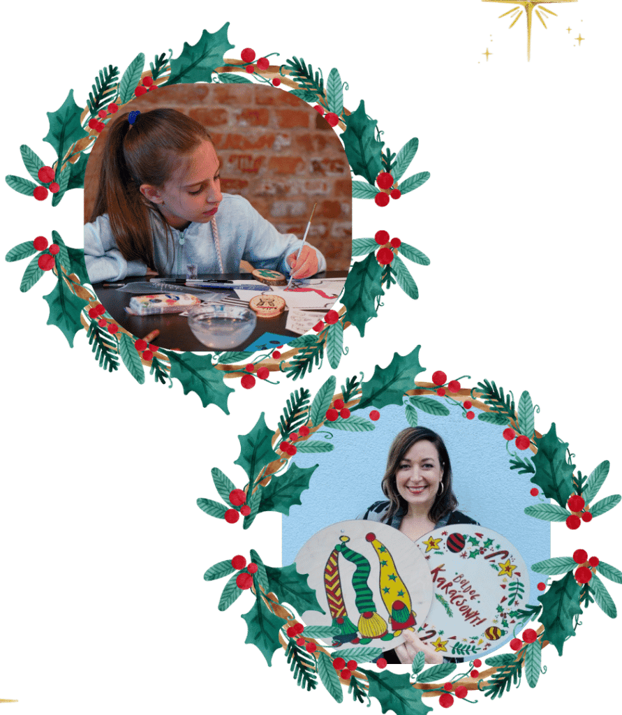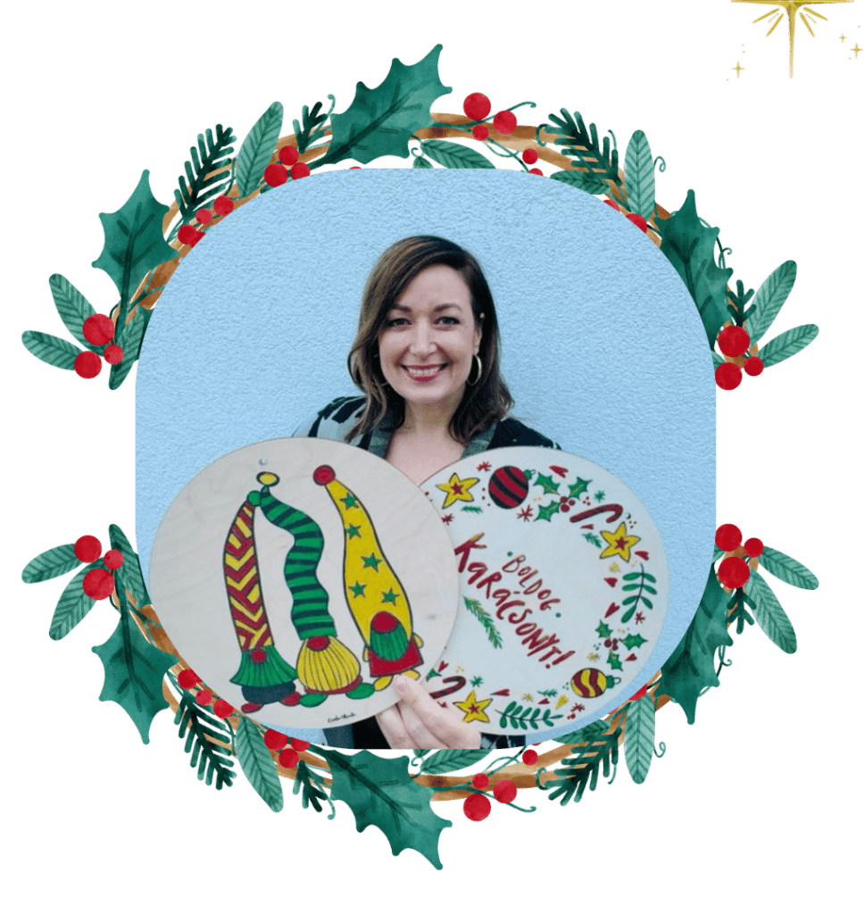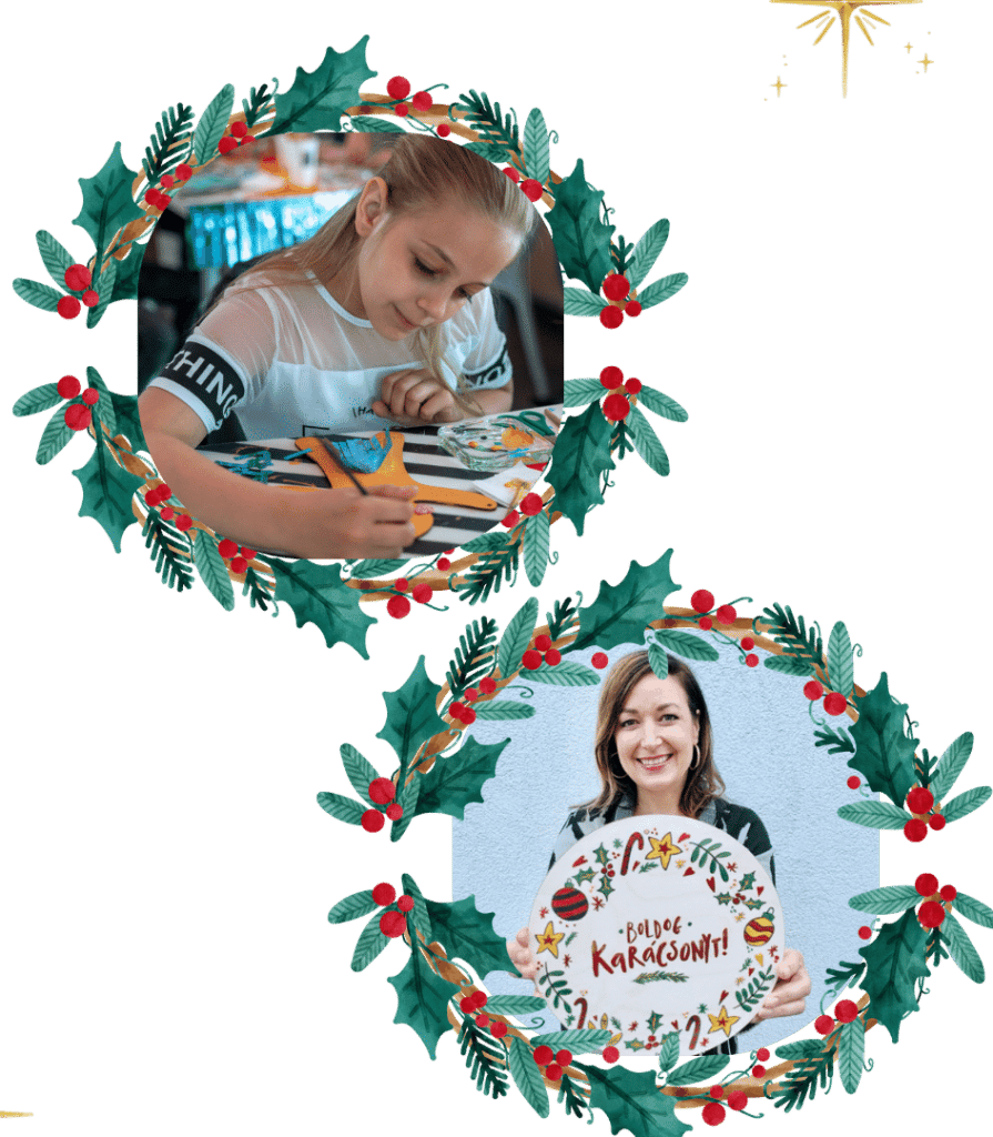 - Egy dekorálható, karácsonyi mintával ellátott fa korongot, amelynek a díszítéséhez minden eszköz megtalálható a csomagban: ecset, valamint céges, és ünnepi színű festékek. A korong kérésre logózható.
