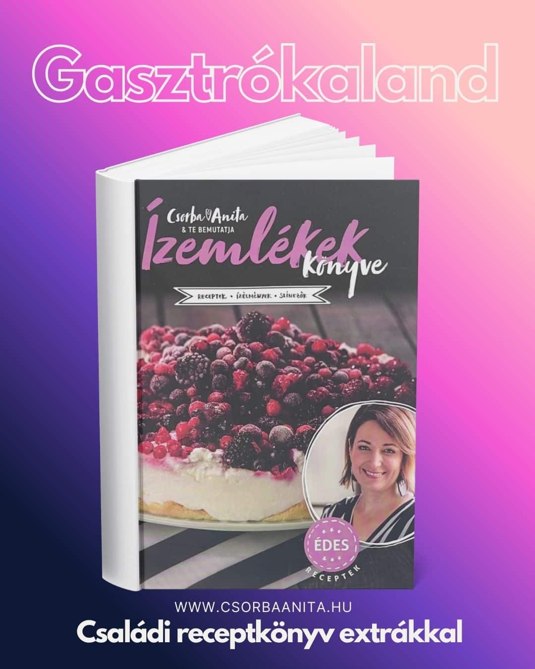Csorba Anita: Ízemlékek könyve – a család gasztronaplója, amely nem csak tele van ínycsiklandó édes receptekkel, Anita olyan oldalakat is tervezett bele, ahová le tudjátok jegyzetelni a kedvenc közös, étkezéses pillanataitokat. Egy szuper vacsora, amit végignevettetek? Egy emlékezetes közös sütés? Bármelyik is kerül bele, megható lesz visszatekinteni erre az élményre.
